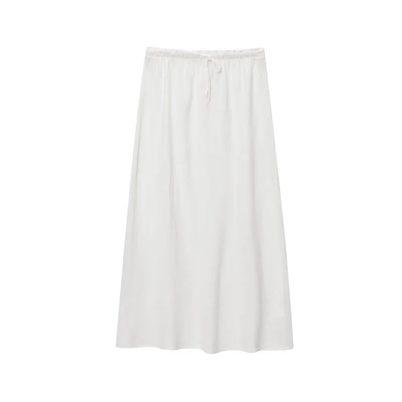 Women's skirt 2025 new solid color linen maxi skirt summer two-color retro casual dress