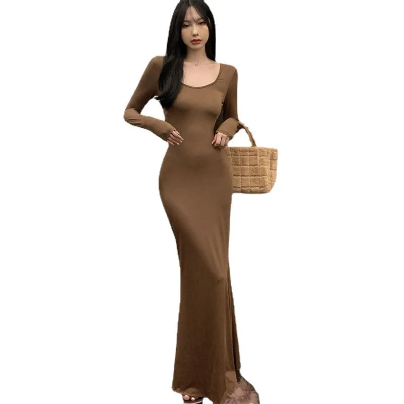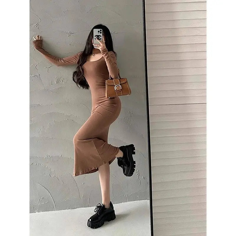 Women's Spring and Autumn Square Neck Long Sleeve Dress Mermaid Sexy Pure Desire Tight Hip Wrapped Dress SS030