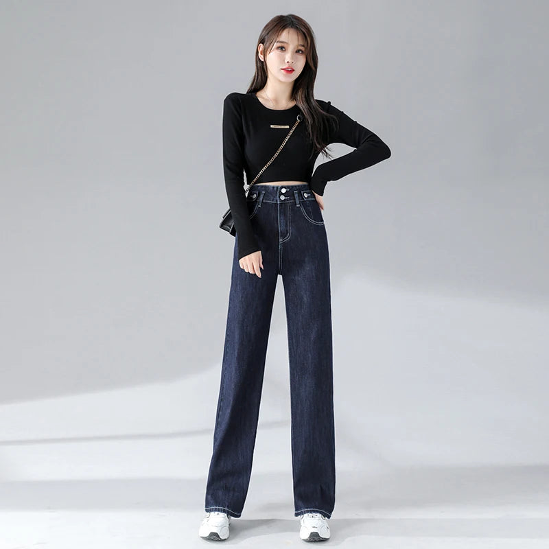 Straight Tube Womens Jeans Loose Leisure Skin Friendly Denim Pants High Waist Comfortable Vintage Streetwear Casual