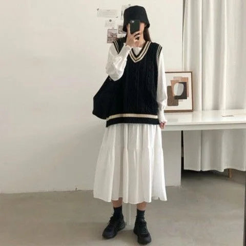 plus Size Women's round Ne Long Sve Dr Autumn Korean Loose Slimming Versatile Skirt A-Line Midi Dr Casual Sle