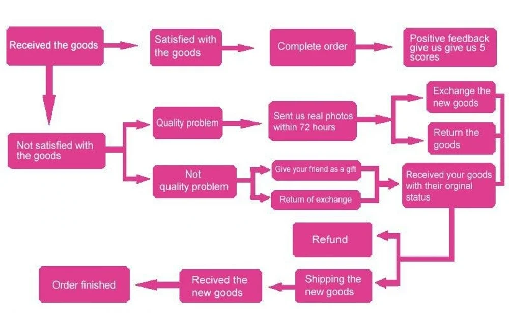 We have an easy return/exchange process! If you are not totally satisfied with the item(including quality problem, not the right size etc.)You may return this item for a full refund.(excluding shipping charges)