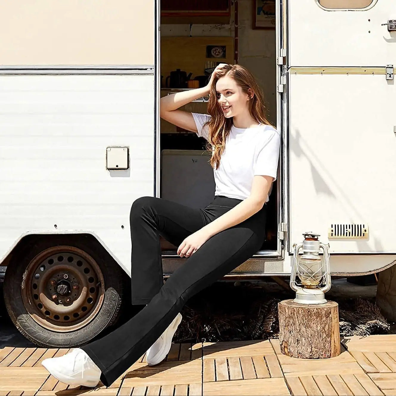 Women Slightly Flared Wide-leg Trousers High Waist Casual Girls Yoga Pants Ladies Pants With Pockets Female Career Long Trousers