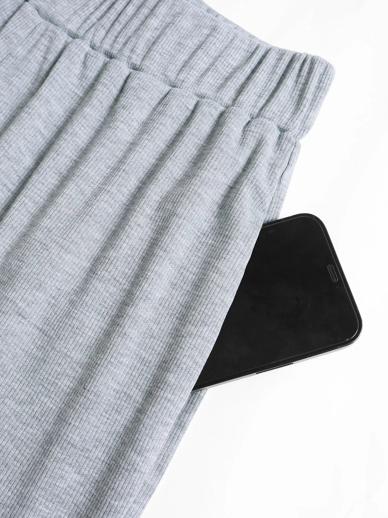 Perfect for the fall and winter seasons, this set's ribbed long sleeve T-shirt and wide leg pants provide warmth and fashion-forward looks.