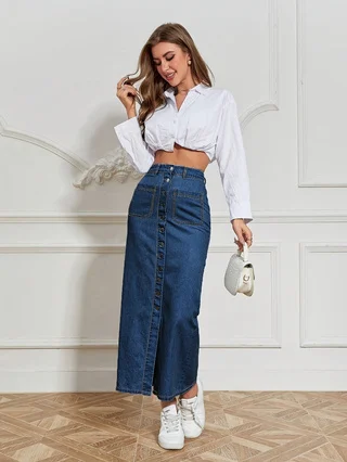 Crafted from high-quality denim, this skirt provides durability and a classic aesthetic.