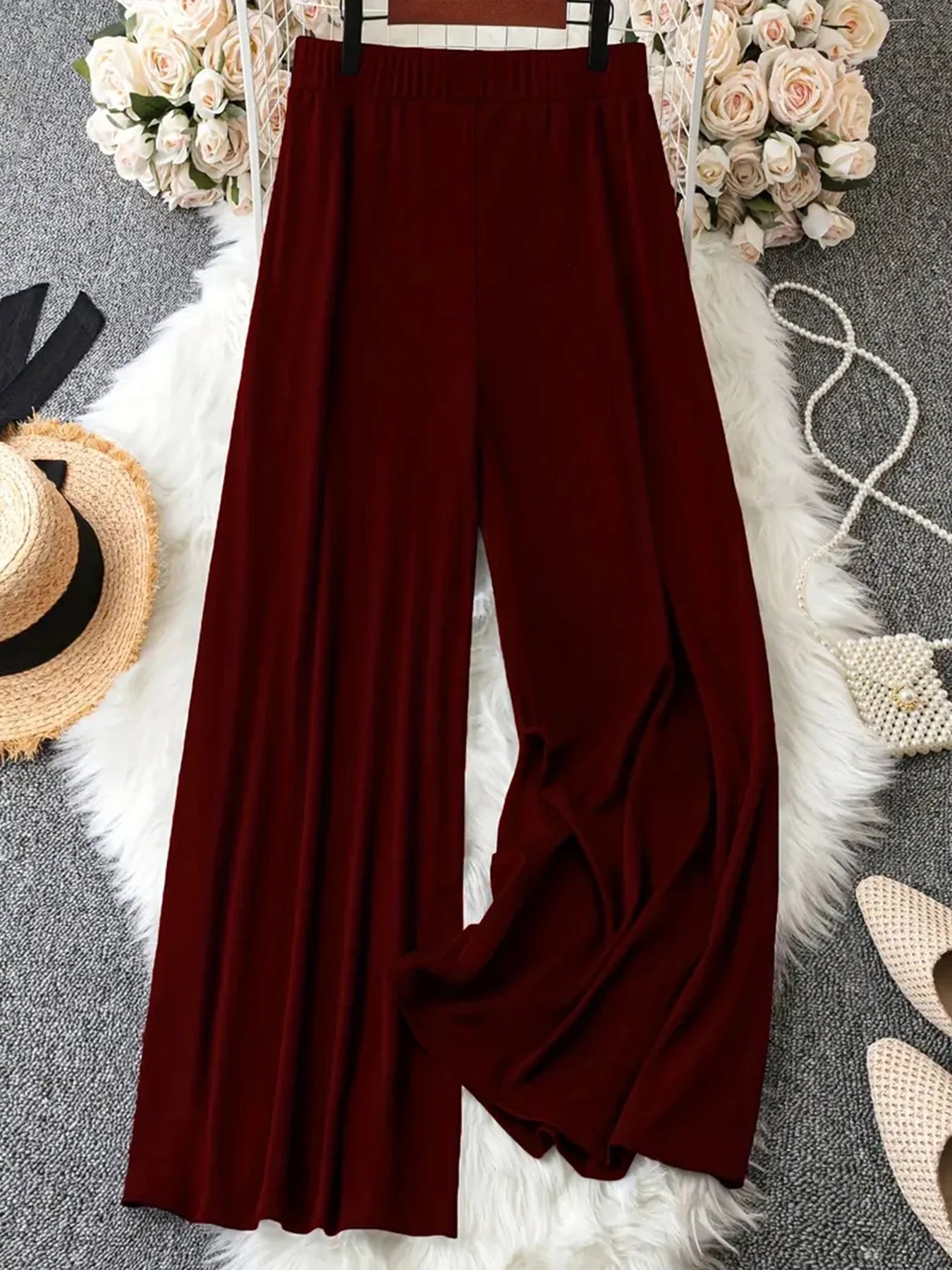 Elevate your style with our high-waisted wide-leg pants, offering a flattering silhouette and comfortable fit.